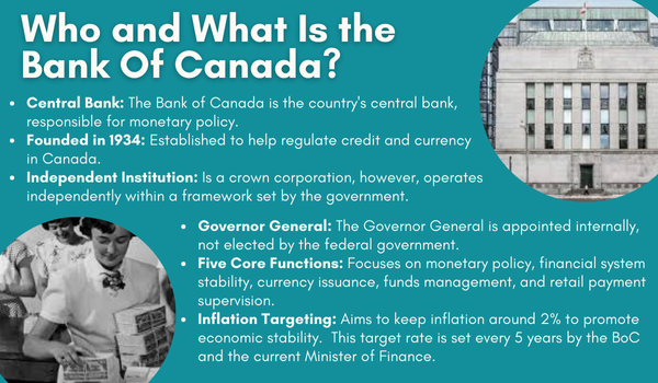 The pandemic and its economic aftermath showed us just how much the Bank of Canada’s monetary policy affects our daily lives - from spending habits to the housing market, job creation, and even the cost of bread. However, many of us are unfamiliar with the Bank’s role and functions. Let's dive into some basics.